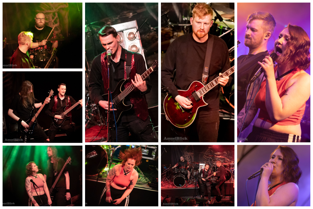 It happens from time to time that a support band, especially one that is not too well known, has to play in front of a small audience. But that wasn’t the case this evening: when LAVILA entered the stage at 8 pm, not only the auditorium in front of the stage was already full, but also the balustrade. The metal band from Osnabrück (or Post Melodic Black Punk, as it says on Instagram) around front-woman Rebecca replaced Asenblut in Oberhausen, who will act as support on the other dates of the tour. Even though Rebecca said towards the end of the gig that it wouldn’t happen very often that LAVILA played in front of such a crowd: it wasn’t noticeable at all during the 40-minute set. Rebecca flashed the audience with her skills, whether it was the clean vocals or the screams and growls. The band had the audience wrapped around their fingers in no time. And that was also because Rebecca talked a lot with the audience and animated them. The seven songs on the set list were also impressively convincing. With „Red Lights“, „LaVila“ and „Stalker“, there were also representatives of the debut album „A Strange Connection“.