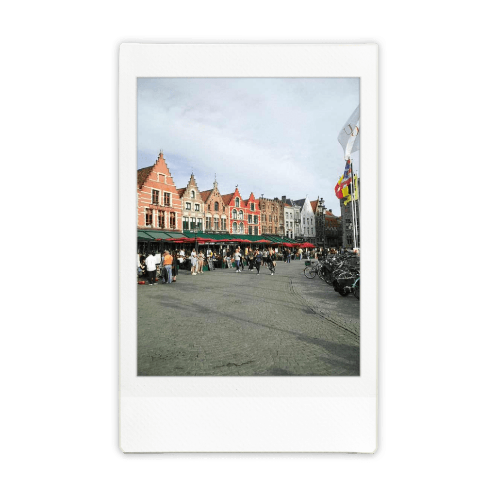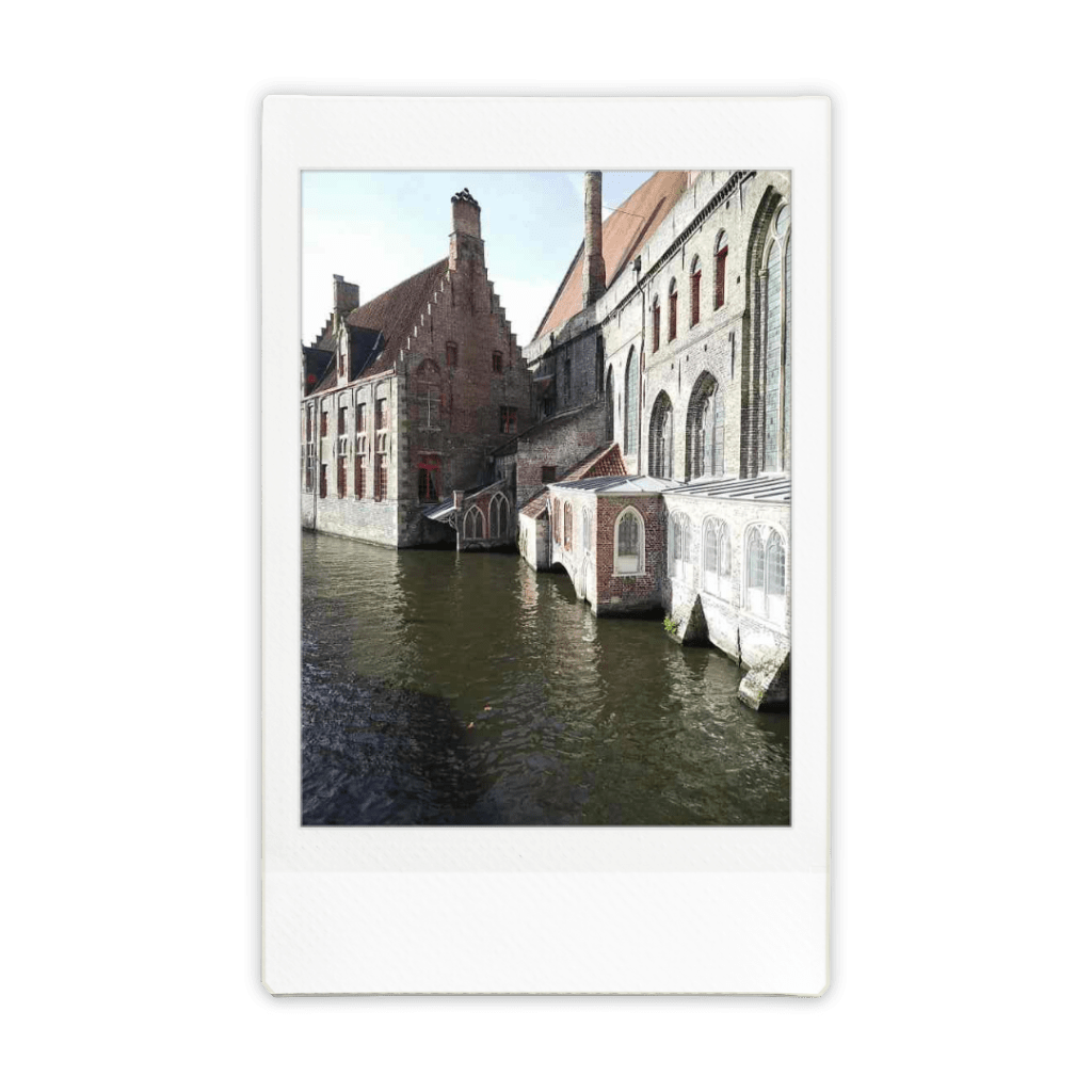 Aus irgendeinem Grund hat der Rozenhoedkaai keinen eigenen deutschen wikipedia Artikel. Das wäre dringend nachzuholen, denn die Menschenmassen hier zeigen deutlich, das es sich um eins DER Highlights in der Stadt handelt. Es aber auch ein wirklich schöner Fotospot. Das Instax-Bild wird dem überhaupt nicht gerecht. Der Name geht darauf zurück, das früher an diesem Ort Rosenkränze verkauft wurden. Heute macht man halt Selfies für Instagram. Man hat ja neben einem wunderschönen Panorama (links auf dem Bild wäre noch etwas mehr Wasser und Gebäude zu sehen) eines DER Wahrzeichen der Stadt im Hintergrund: den Belfried. Aber wie dem dem Text, also nicht nur diesem Abschnitt, sondern dem gesamten Text zu entnehmen ist: VIEL ZU ÜBERFÜLLT. Also weiter der Dijver entlang zum Arentshuis und auf den Arentshof. Hier warten Statuen.
